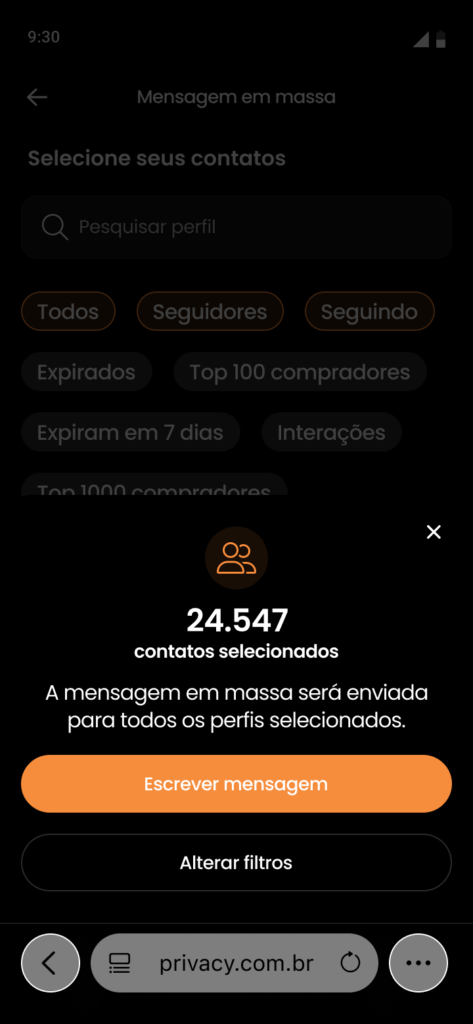 Como mandar mensagens em massa na Privacy?